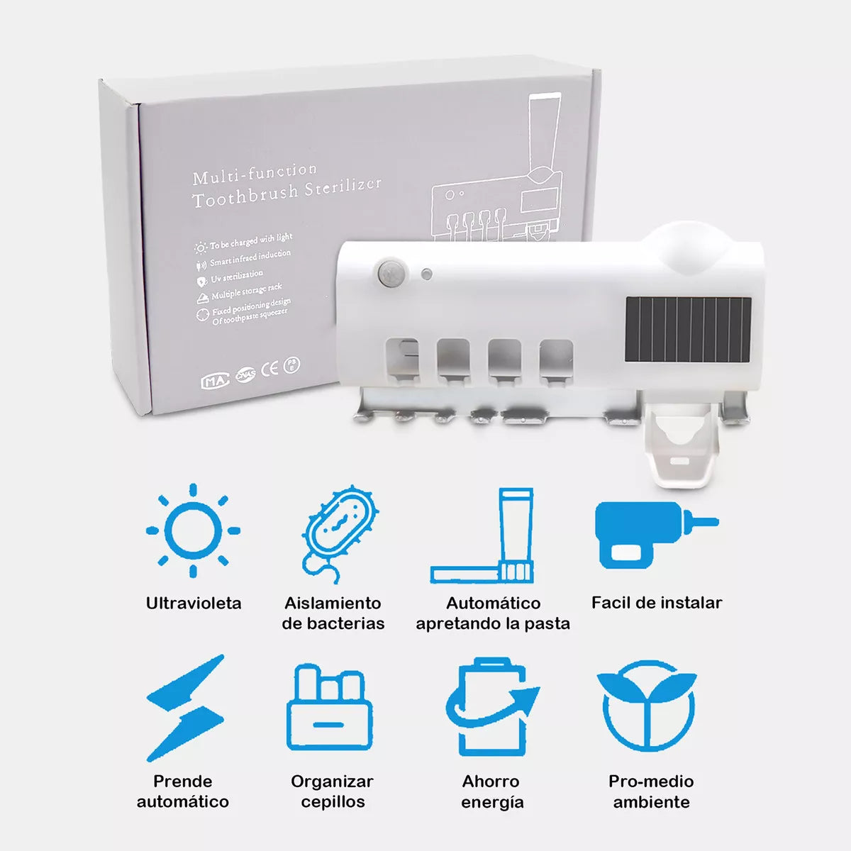 Con luz UV que ayuda a eliminar bacterias y un diseño multifuncional que organiza hasta 5 cepillos y dispensa la pasta automáticamente.